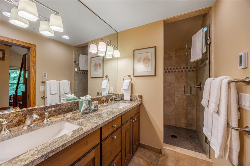 - Cozy media room, game table, and large steam shower