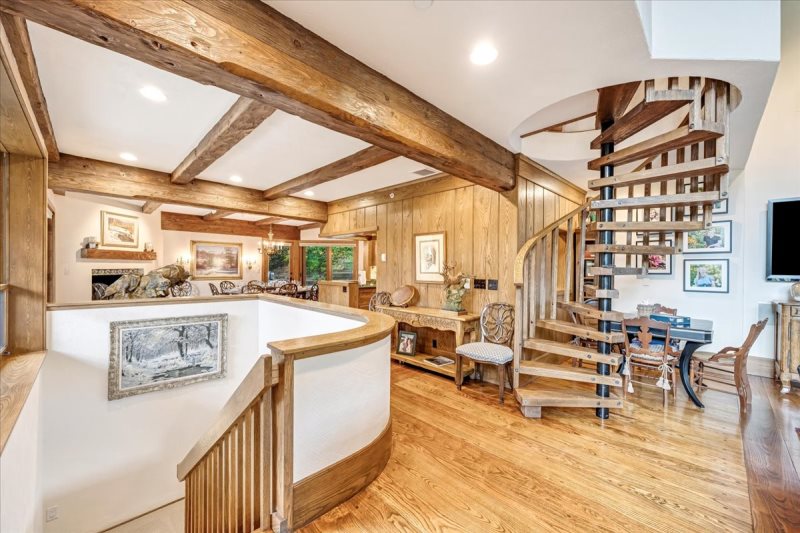 - Two levels with spiral stairs